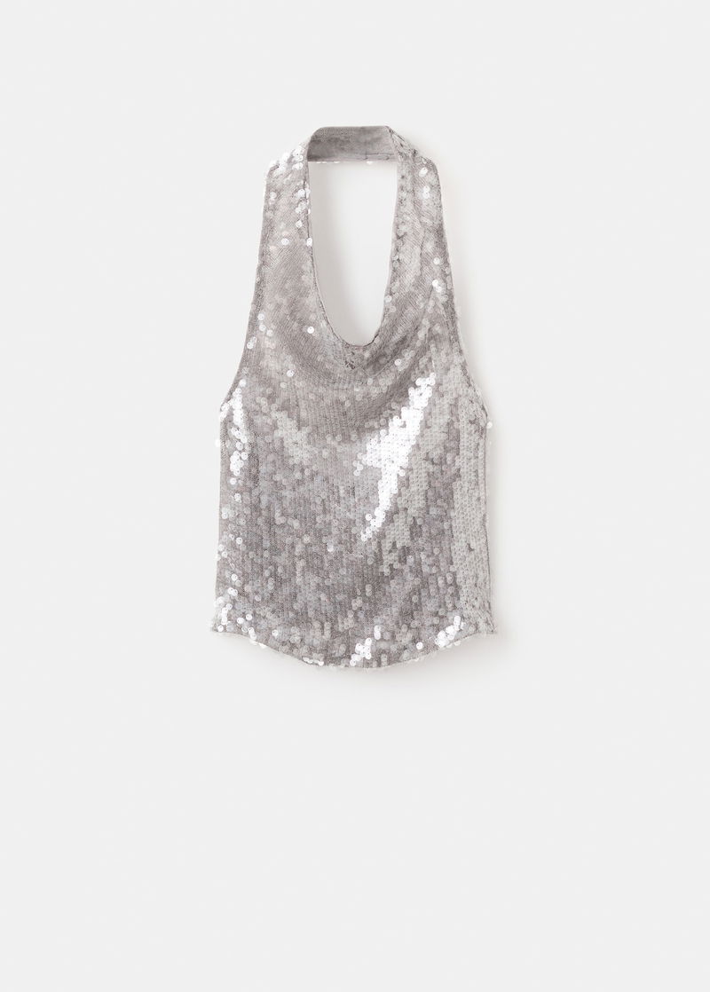 Sequin Top With Cowl Neckline