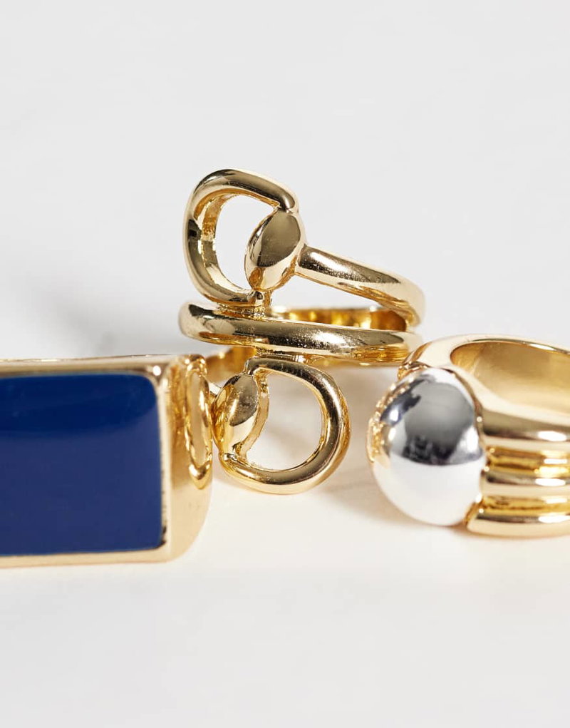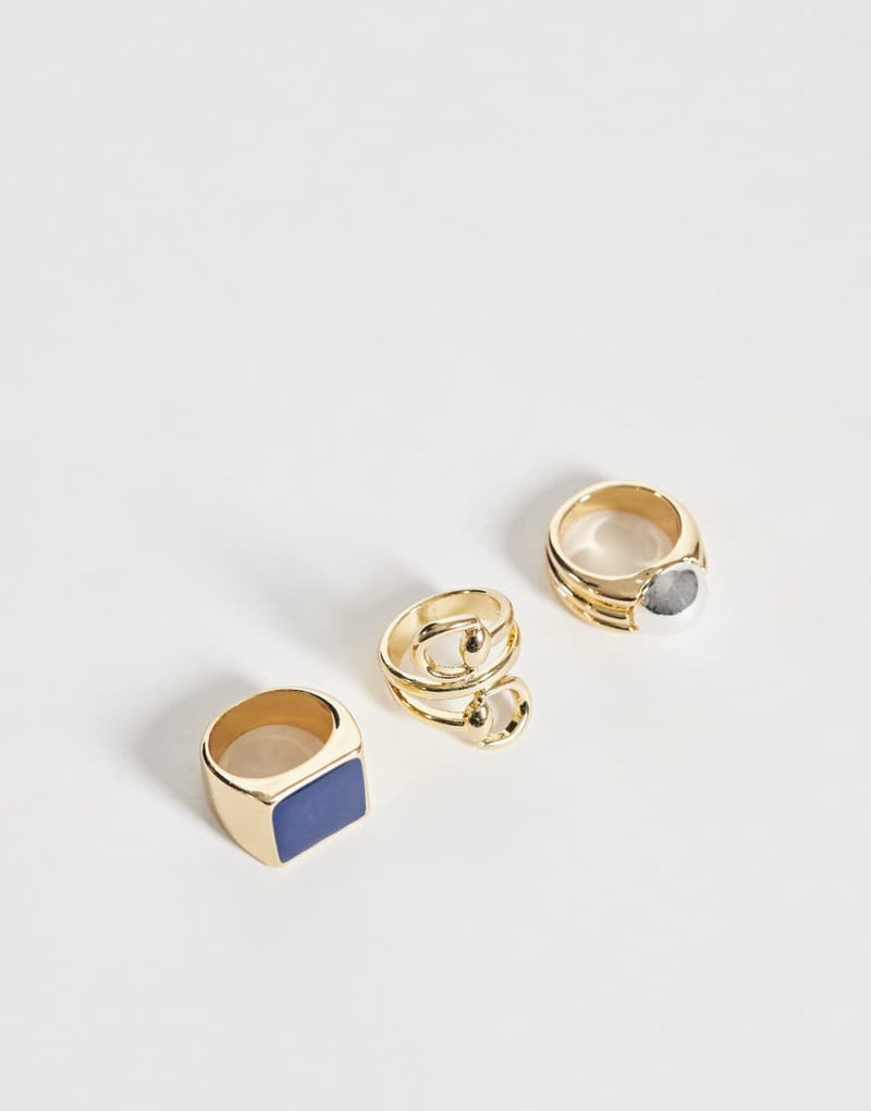Set Of 3 Statement Rings In Gold