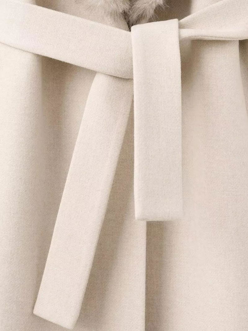 Shawl Collar Wool Rich Wrap Coat, Stone