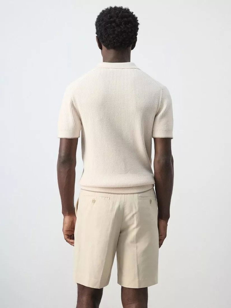 Short Sleeve Ribbed Knit Cotton Polo Shirt, Sand
