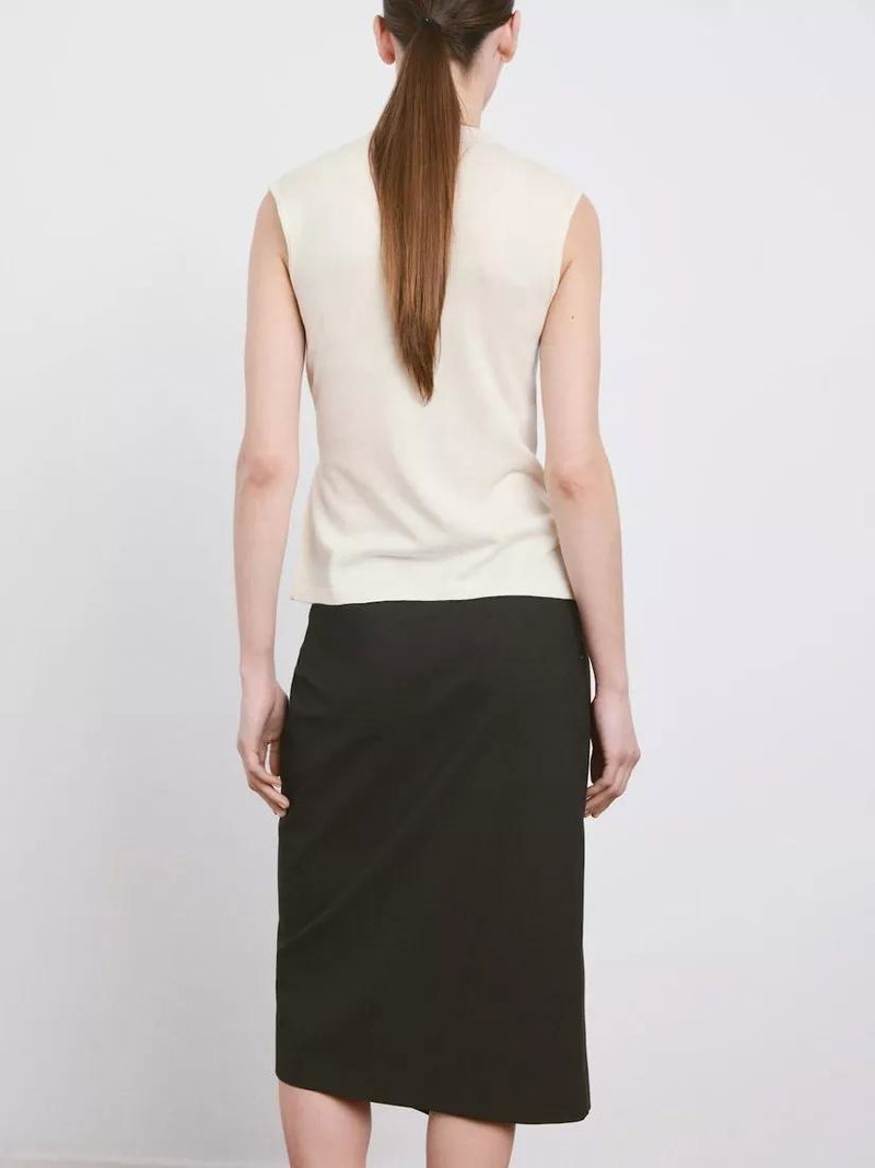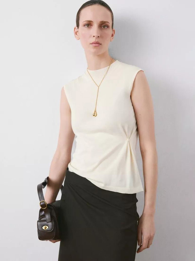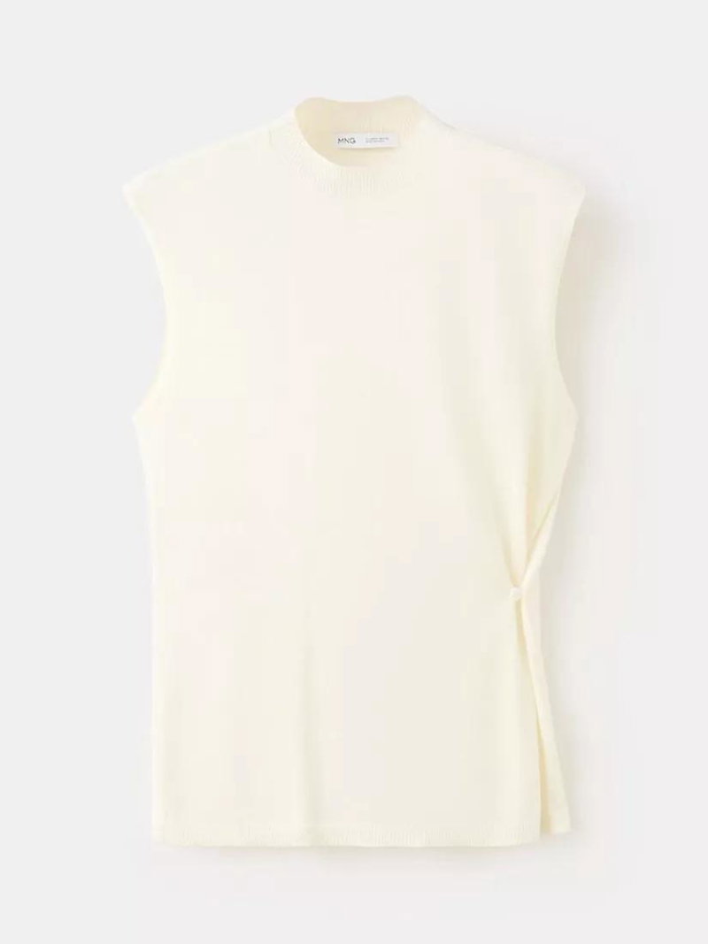 Fabricated from a cotton blend, this draped sleeveless knitted top by Mango is a wardrobe essential reimagined in its most timeless form.