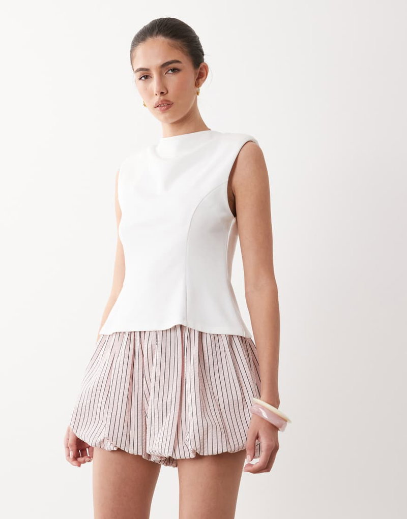 Sleeveless Peplum Hem Top In White