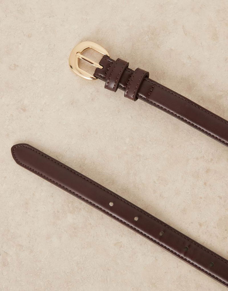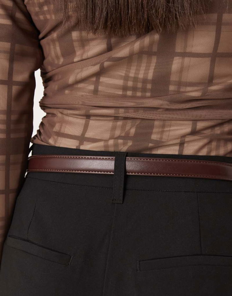 Slim Faux Leather Belt In Brown