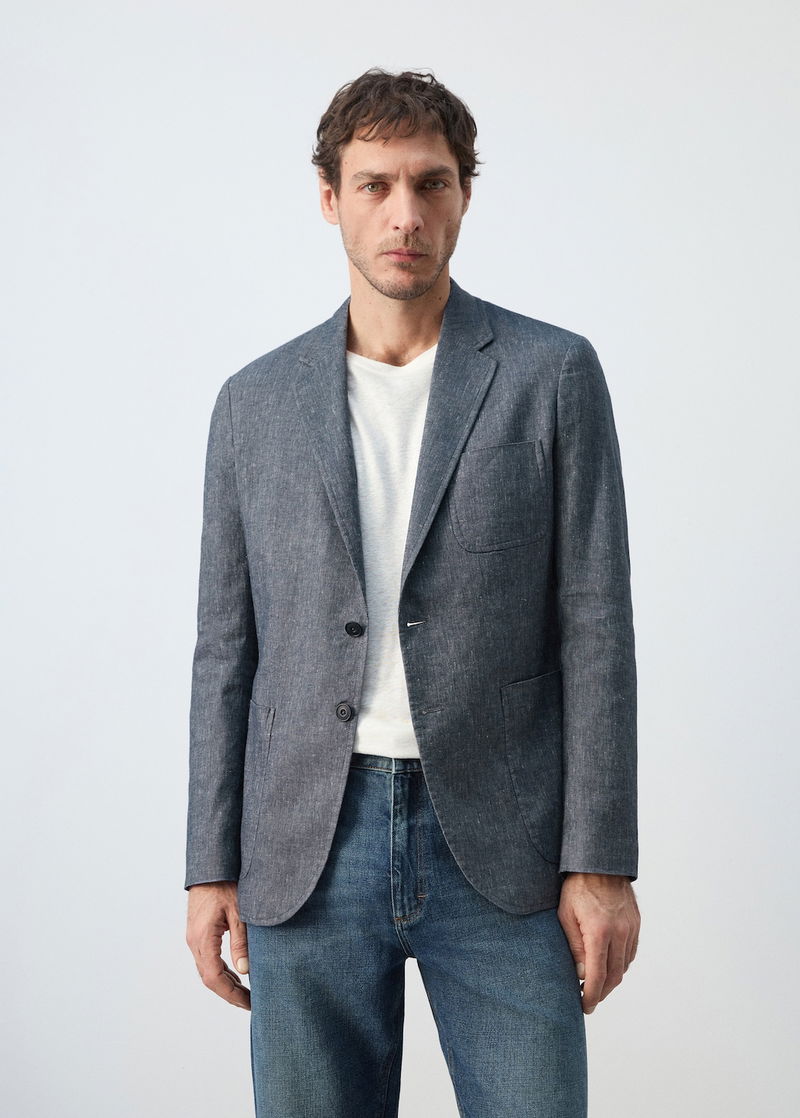 Slim Fit Linen Cotton-blend Blazer