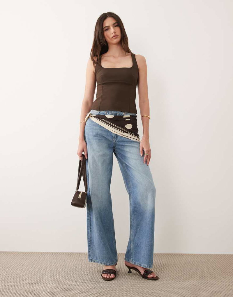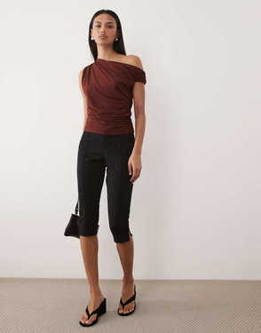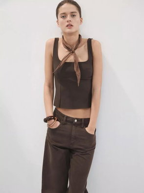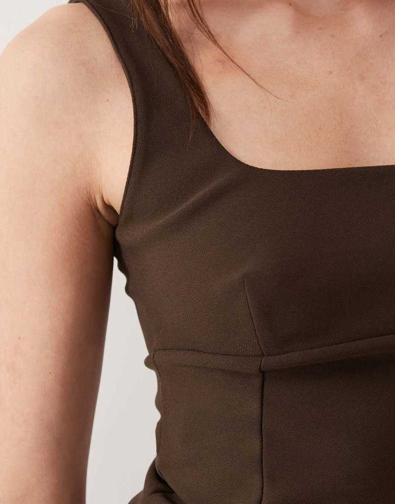 Square Neck Structured Sleeveless Top In Brown