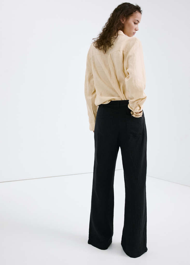 Straight-leg Crinkle Trousers, Mid-rise