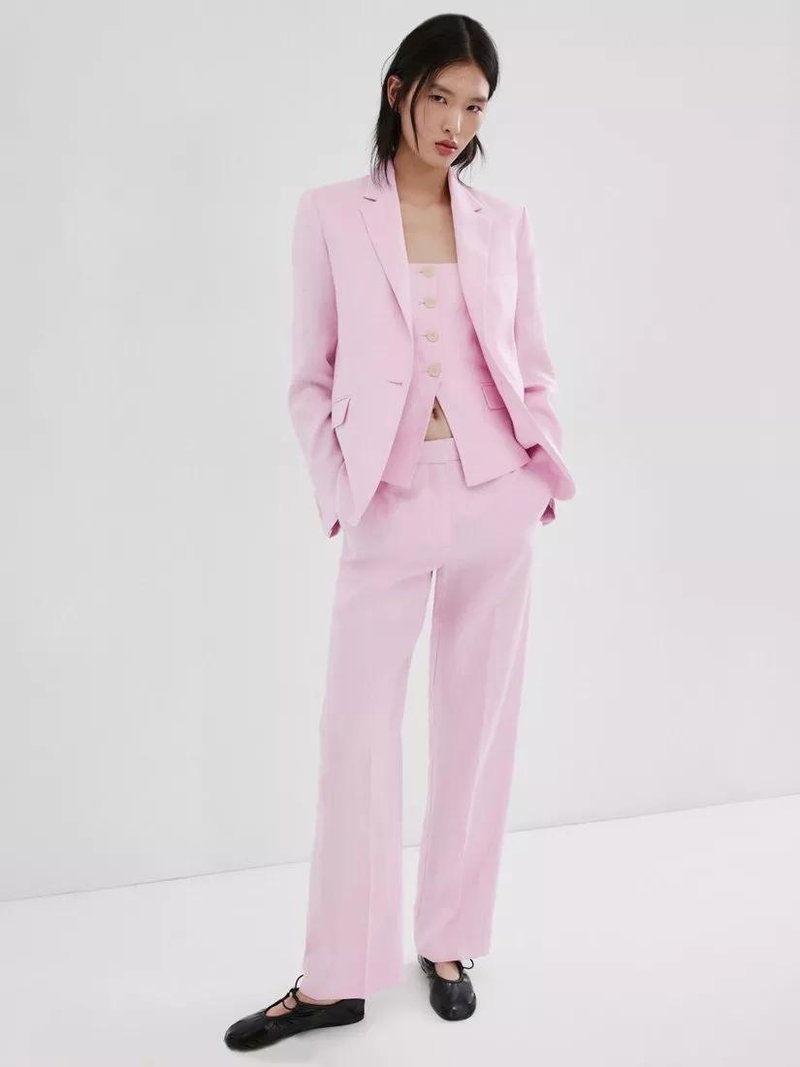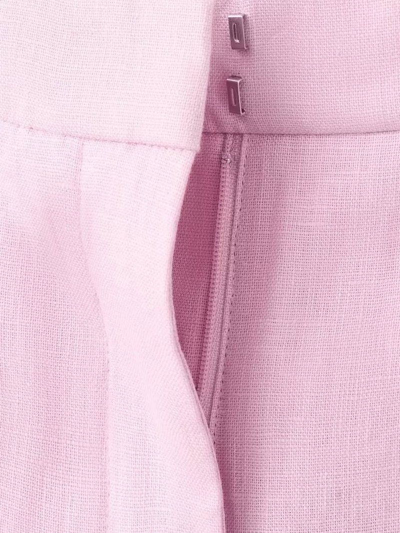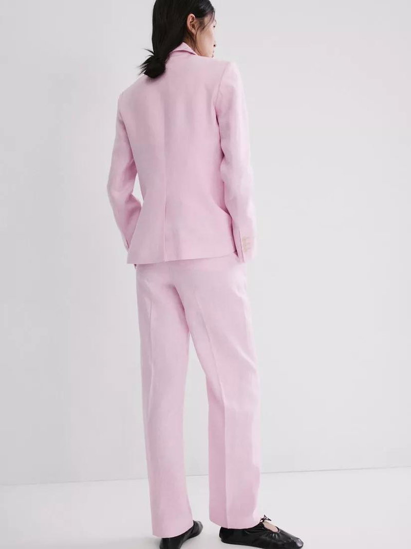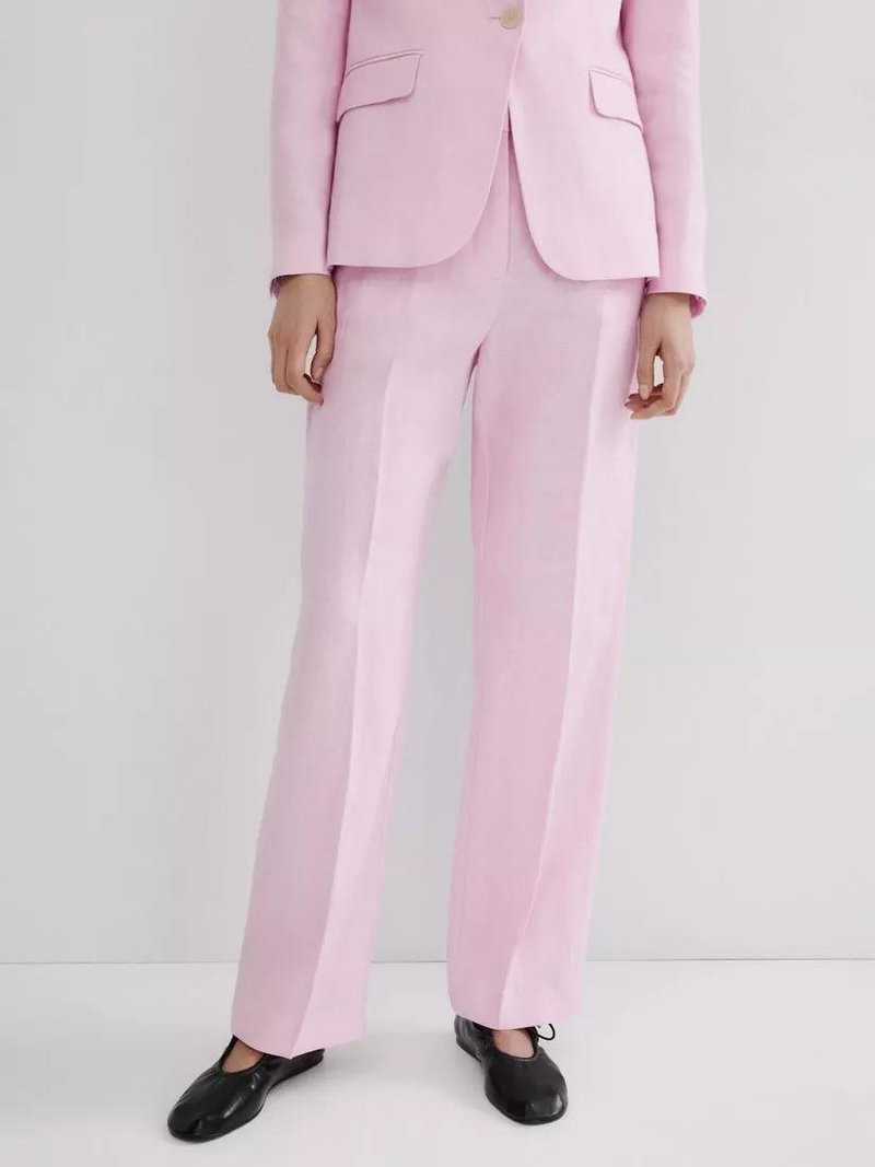 Straight Leg Linen Suit Trousers, Pink