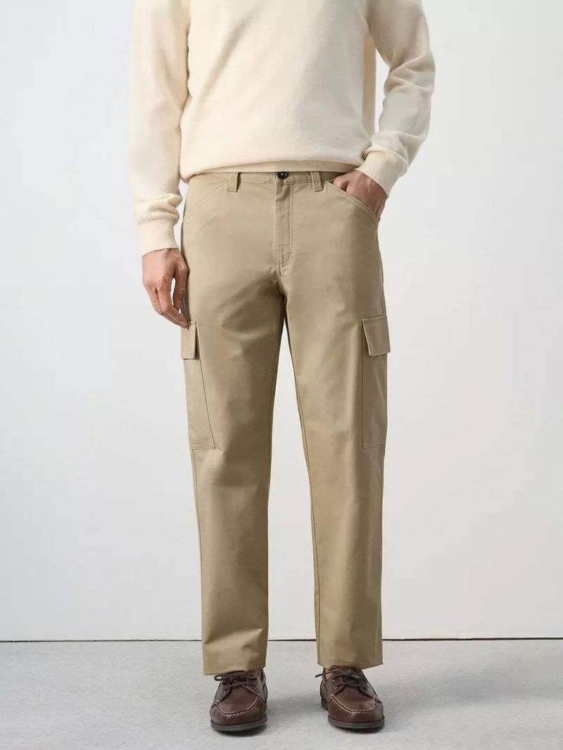 Straight Leg Tailored Cargo Trousers, Beige