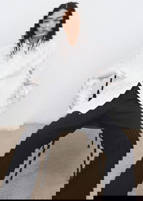 Cotton-blend fabric. Textured fabric. Elastic fabric. Long design. Straight Design. Medium waist. Elastic waistband. No fastening. Total look.