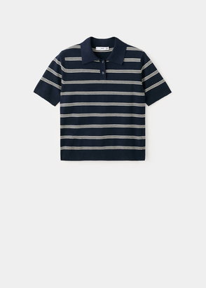 Stripe Ribbed Polo Shirt, Navy/Multi