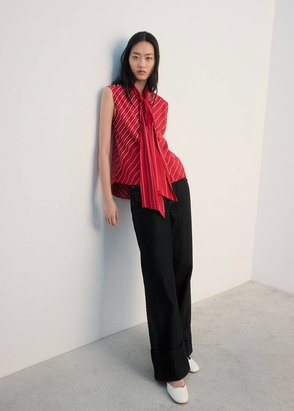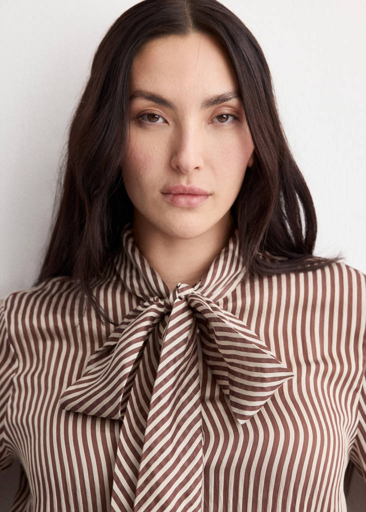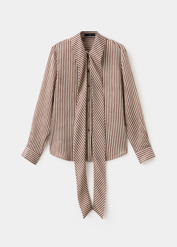 Striped Blouse With Tie Neck Collar