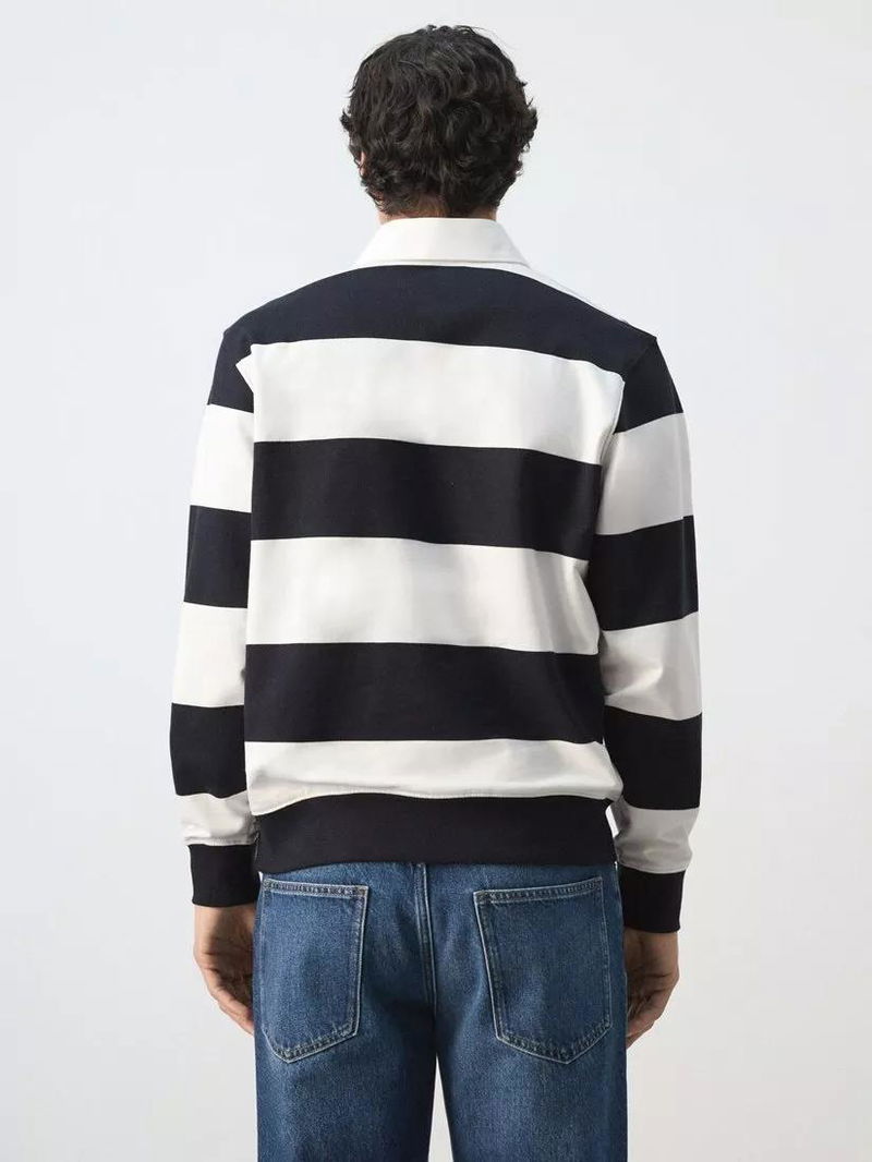 Striped Cotton Knit Polo Sweatshirt, White/Multi