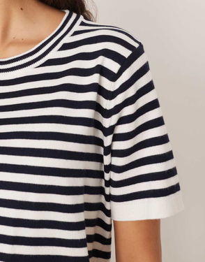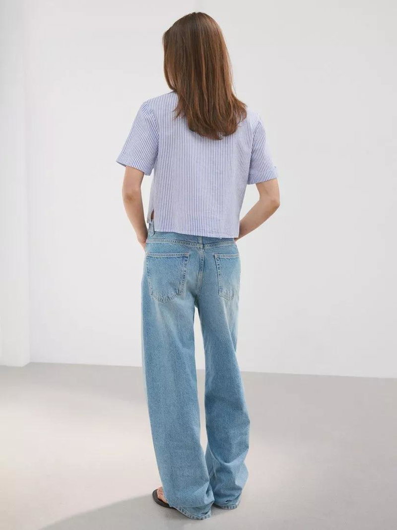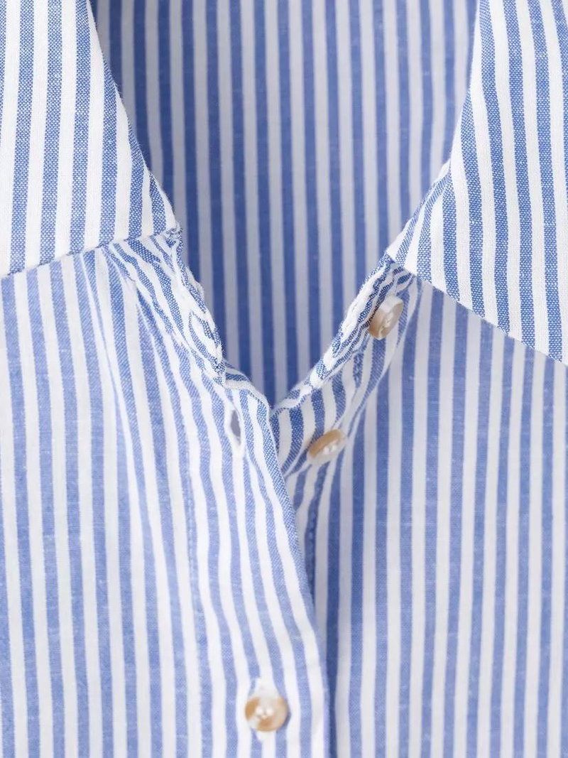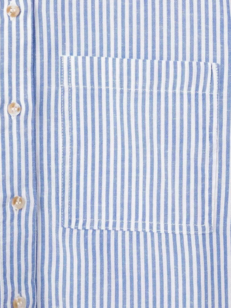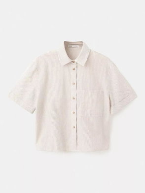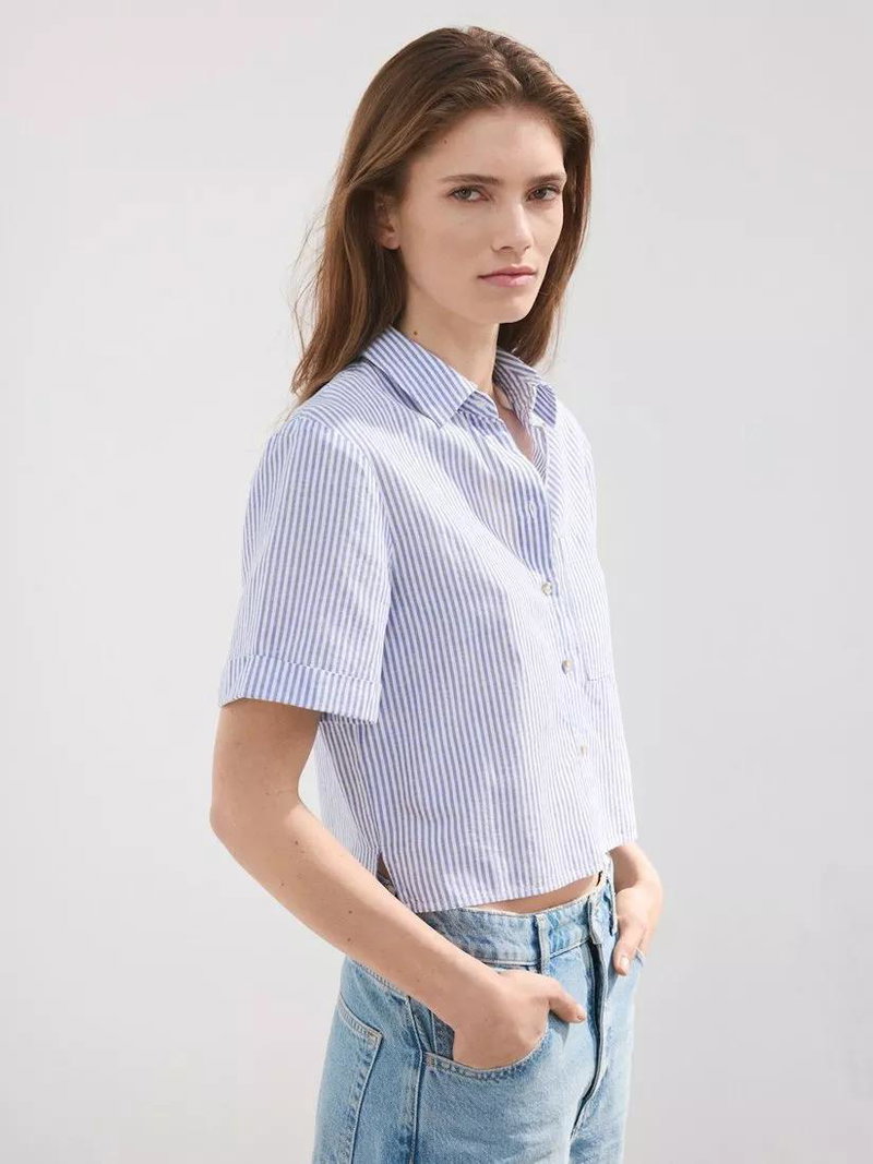Striped Cropped Short Sleeve Shirt, Sky Blue
