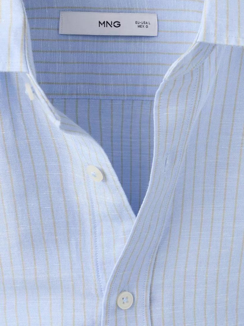 Striped Linen Cotton Blend Shirt, Sky Blue