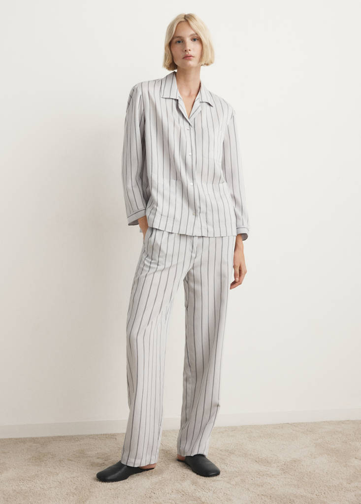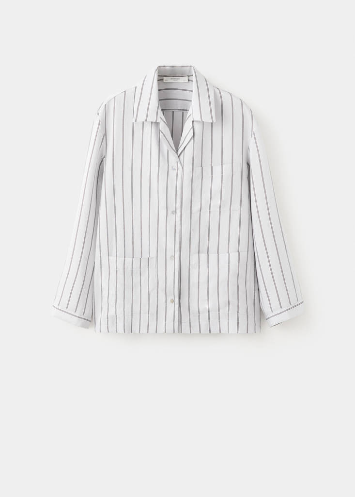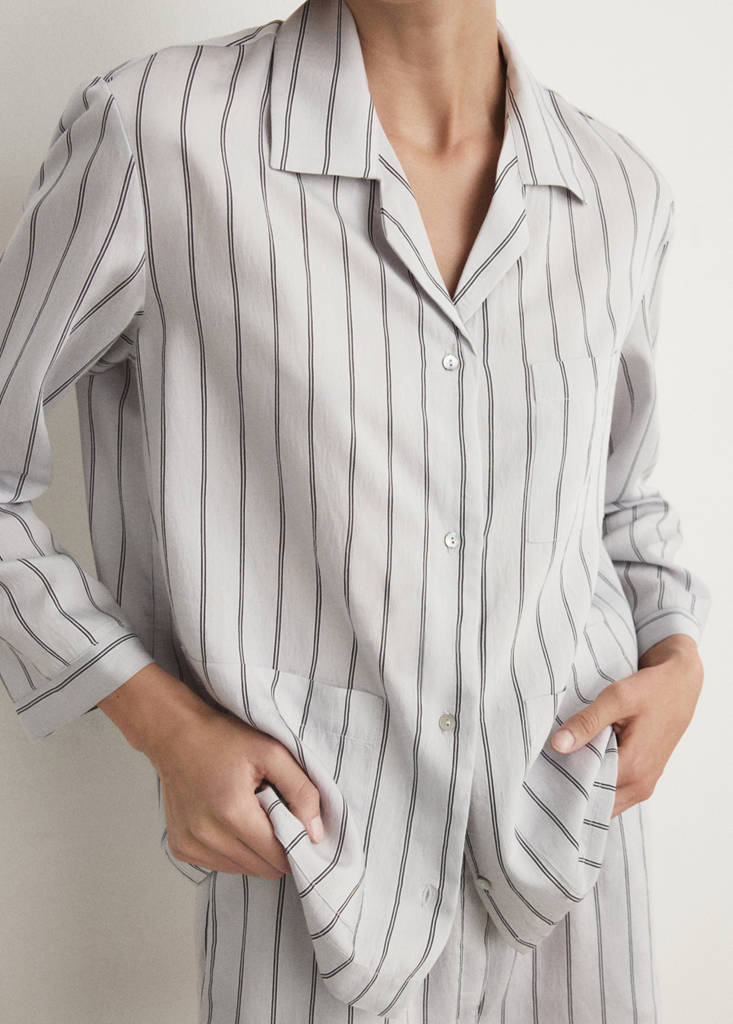 Striped Pajama Shirt With Front Pocket