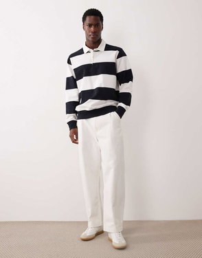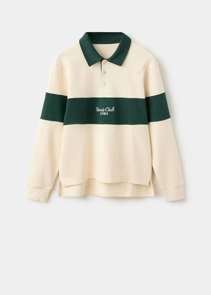 Striped Polo Sweatshirt, 100% Cotton