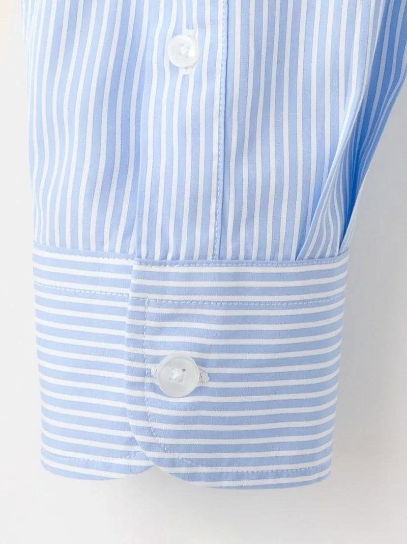 Striped Regular Fit Long Sleeve Cotton Shirt, Sky Blue