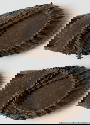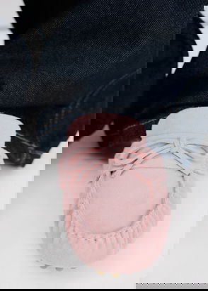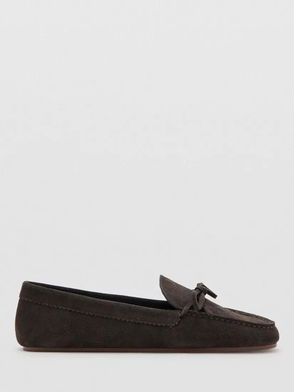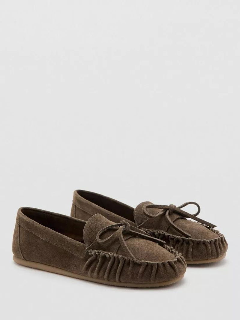 Suede Ruched Toe Moccasin Bow Tie Loafers, Sand
