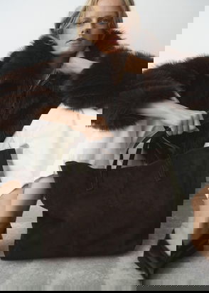Suede Structured Tote Bag In Dark Brown