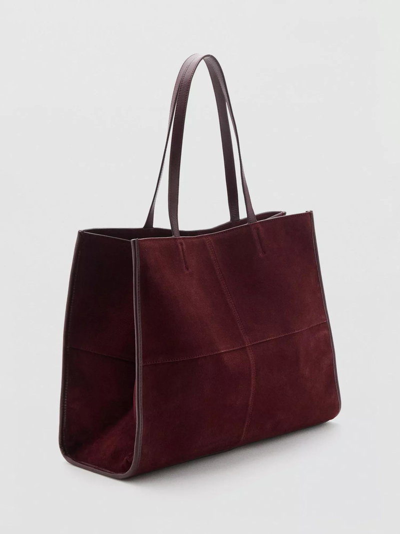 Suede Tote Bag, Dark Red