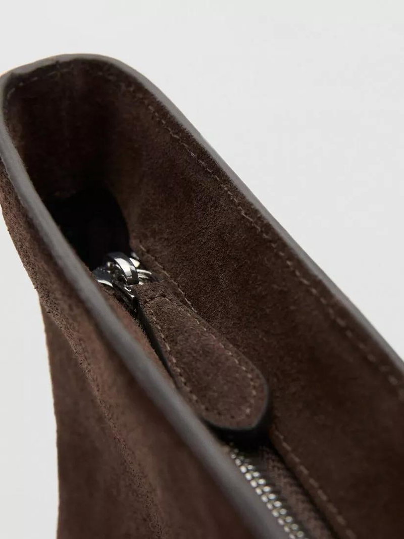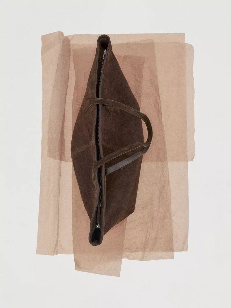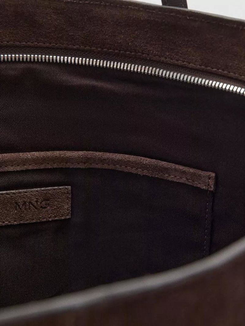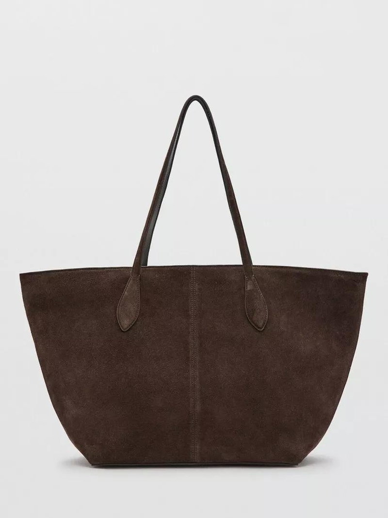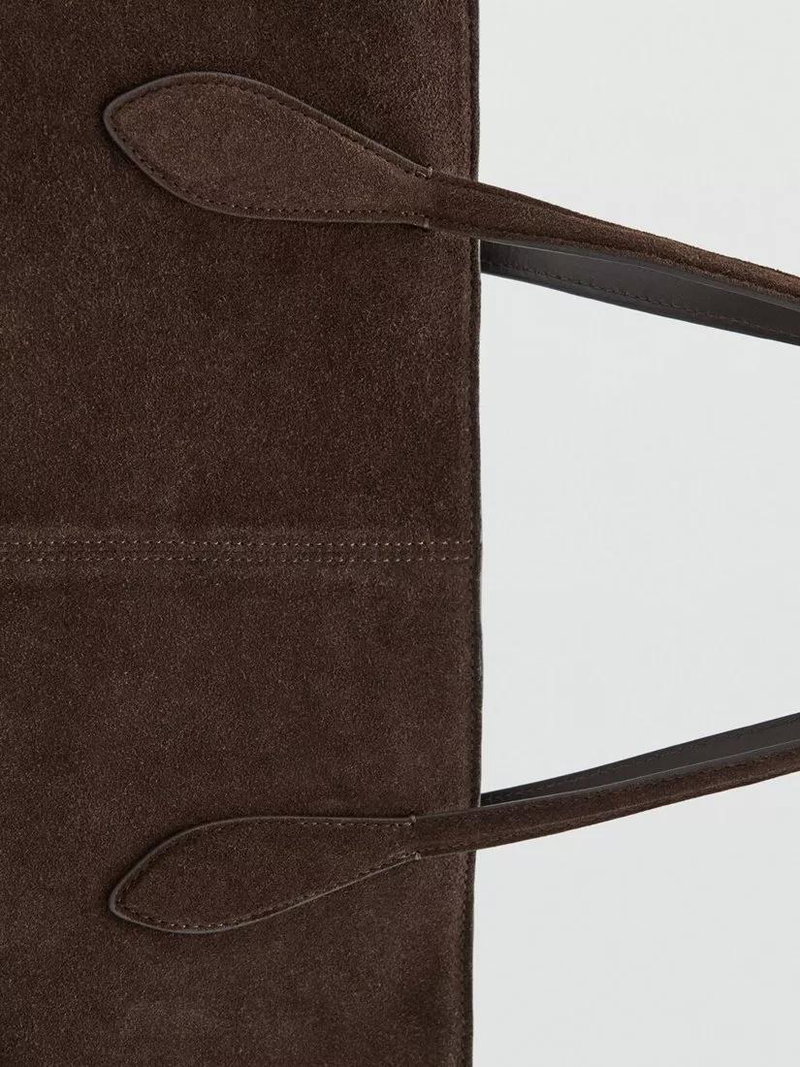 Suede Twin Handle Tote Bag, Brown