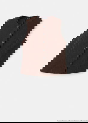 Straight design. Round neck. Sleeveless. Wide straps. Two front welt pockets. Adjustable buckle on the back. Front closure with buttons. Total look.