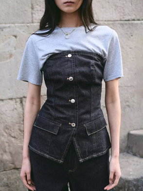 Tailored Cropped Top, Blue