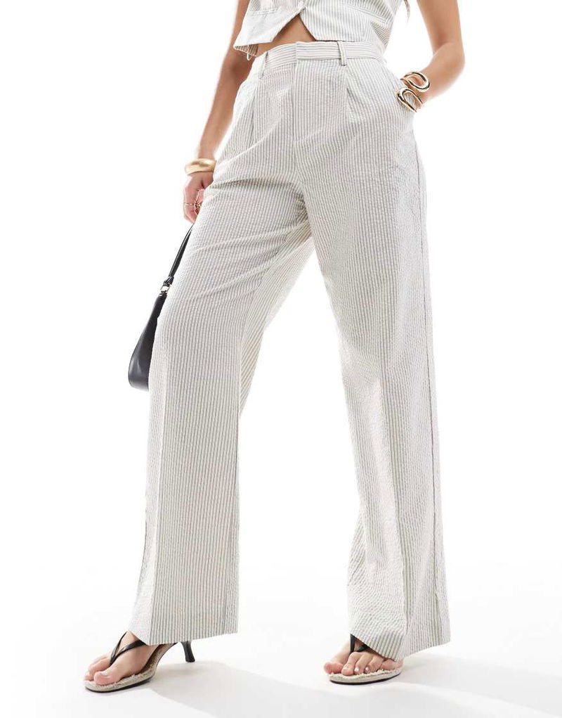 Tailored Pinstripe Co-ord Trousers In Light Beige