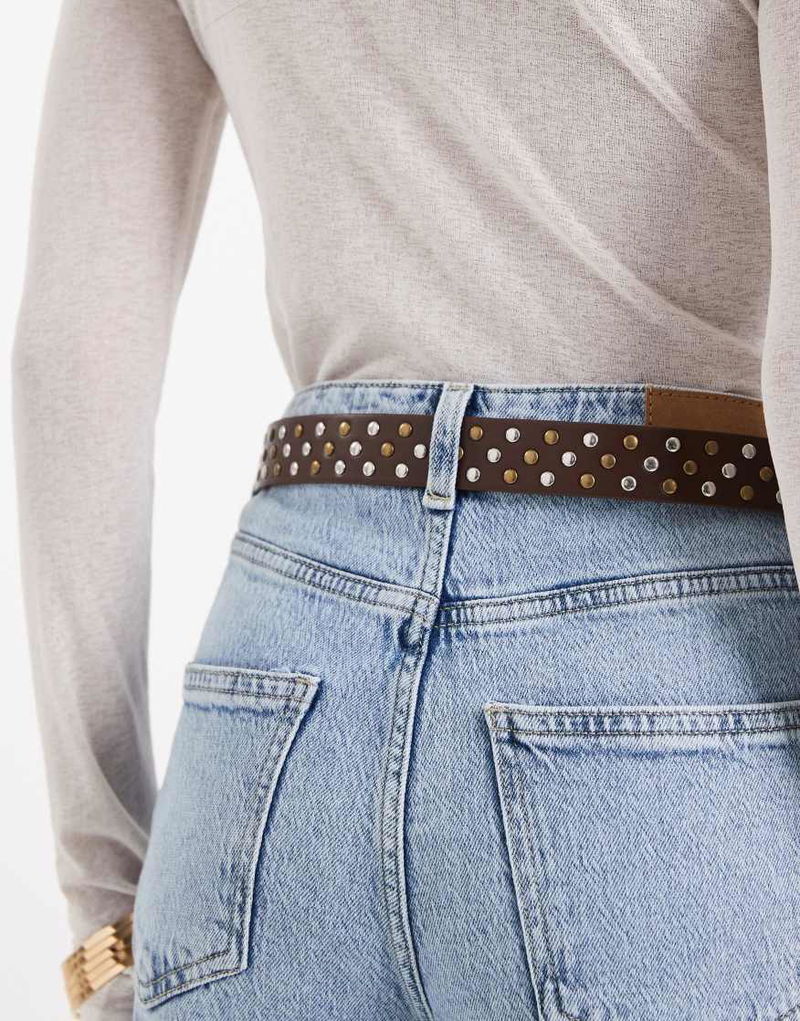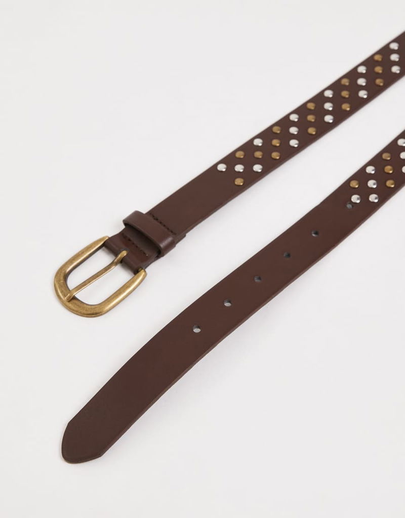 Teen Leather Look Studded Belt In Brown