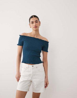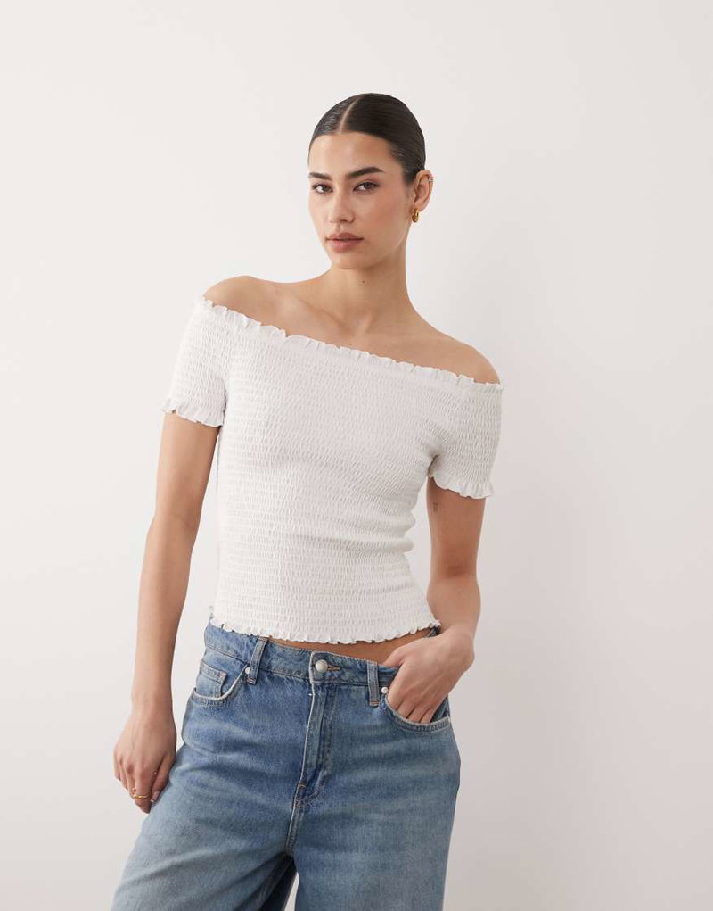 Teen Shirred Off Shoulder Top In White