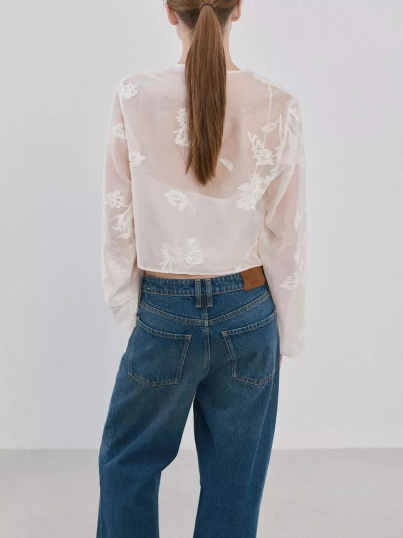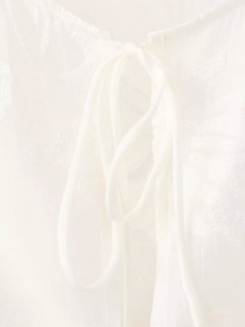 Tie Front Embroidered Sheer Top, Off White