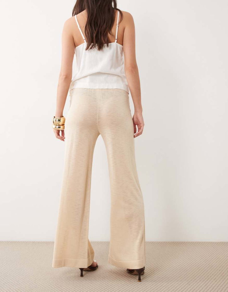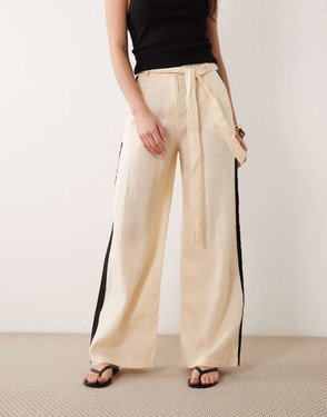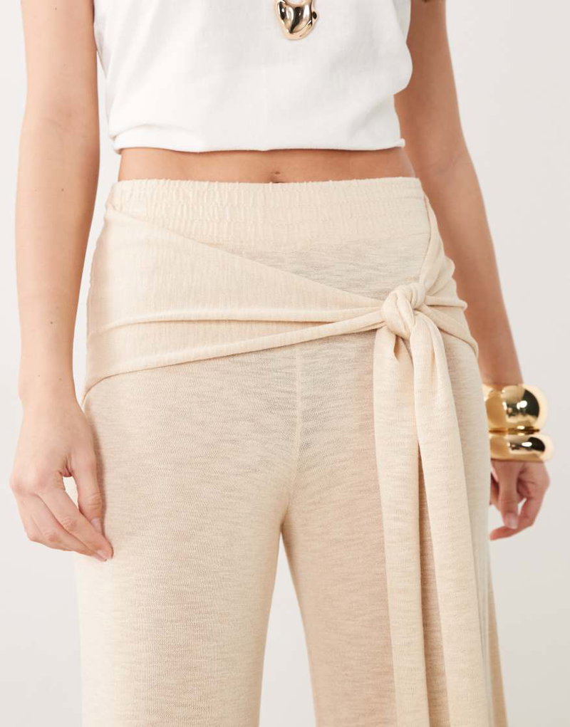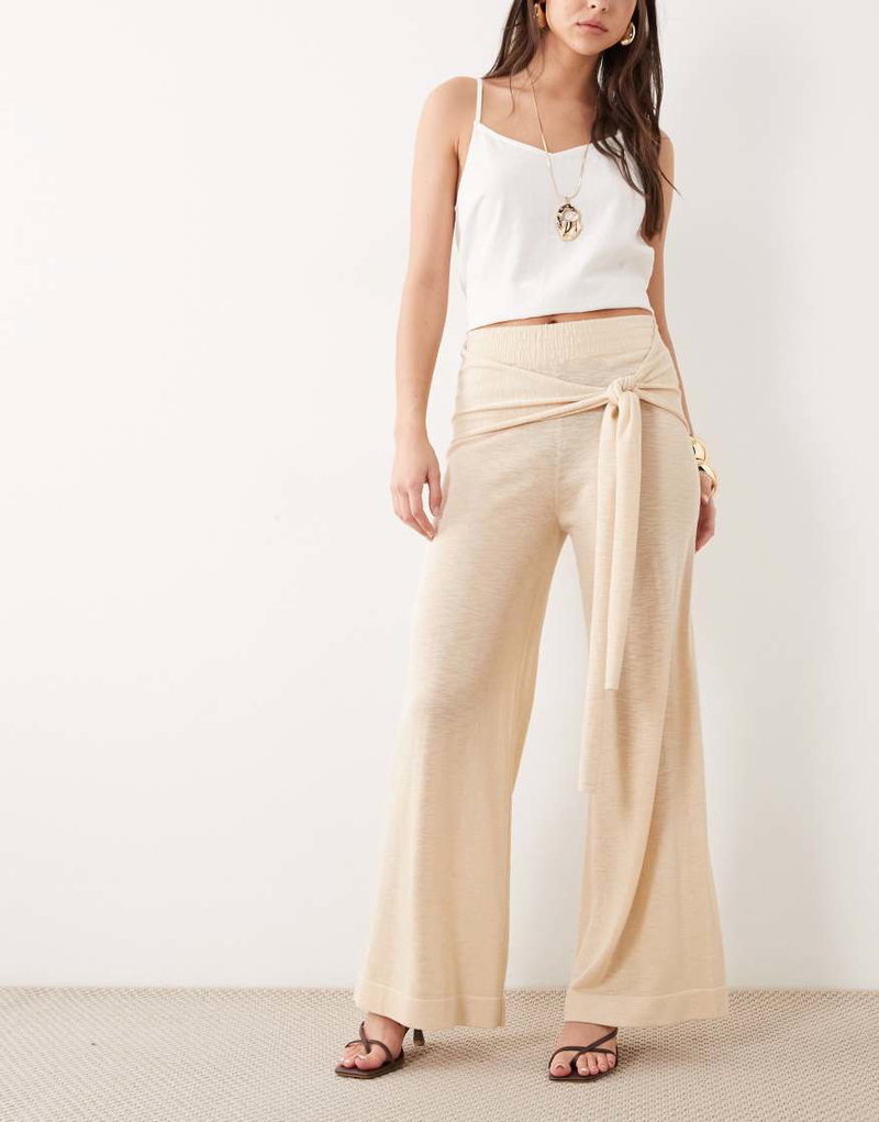 Tie Waist Straight Pants In Beige