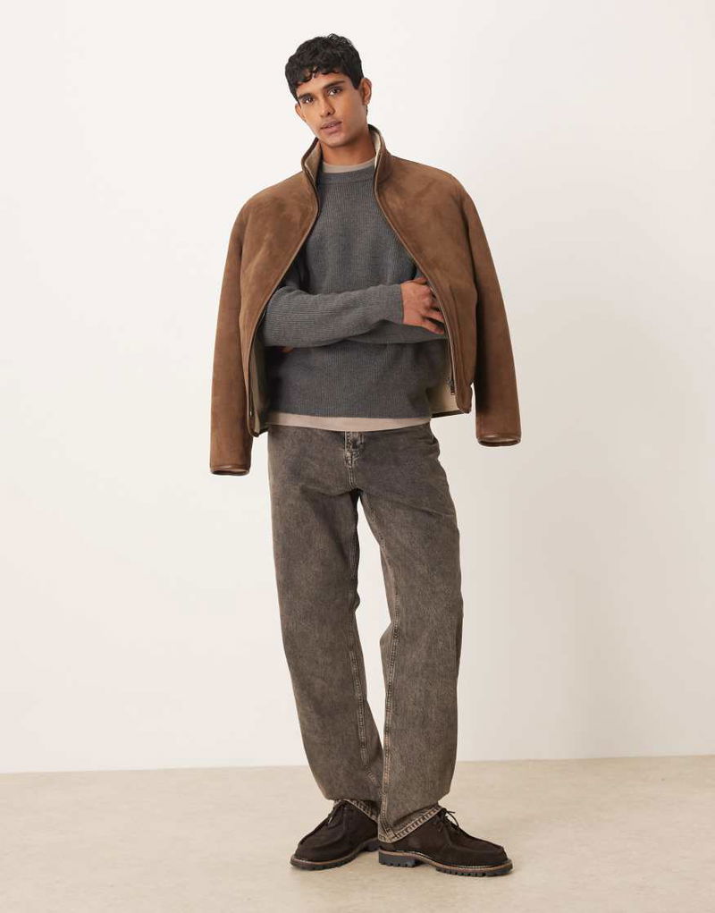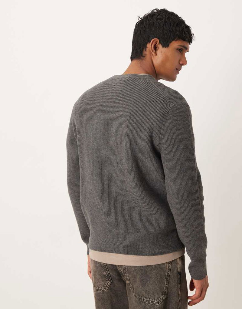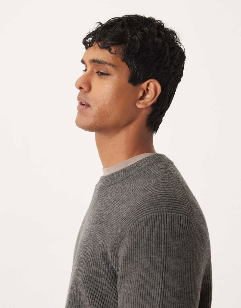 Wool Mix Relaxed Fit Ribbed Jumper In Charcoal