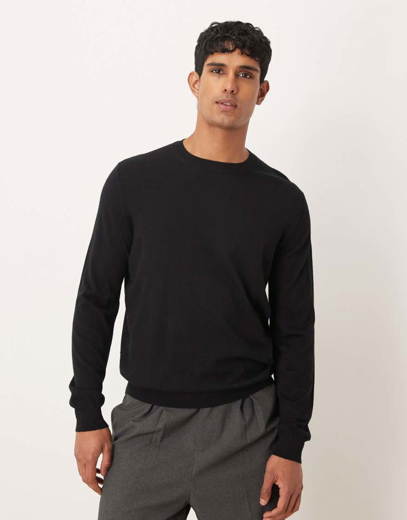 Wool Round Neck Jumper In Black