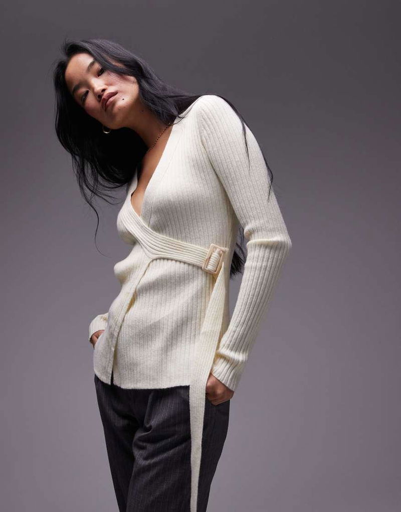 When cosy days are calling. Wrap front. Long sleeves. Buckle detail. Regular fit.