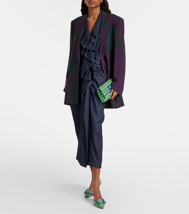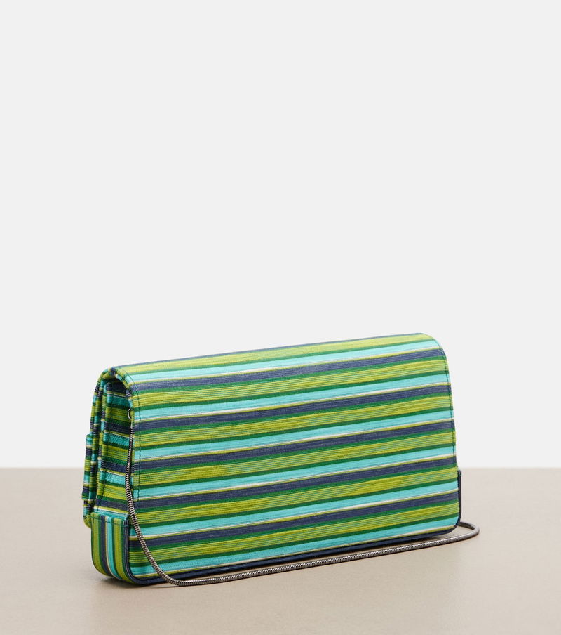 When elegant events beckon, there's no better companion than the Maygot clutch from Manolo Blahnik. The Small rectangular bag is crafted from a striped fabric and enriched by a leather buckle on the front.