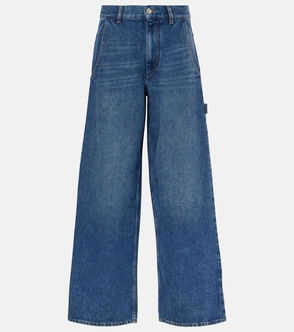 Loose-fit non-stretch denim jeans. Fading and whiskering throughout.