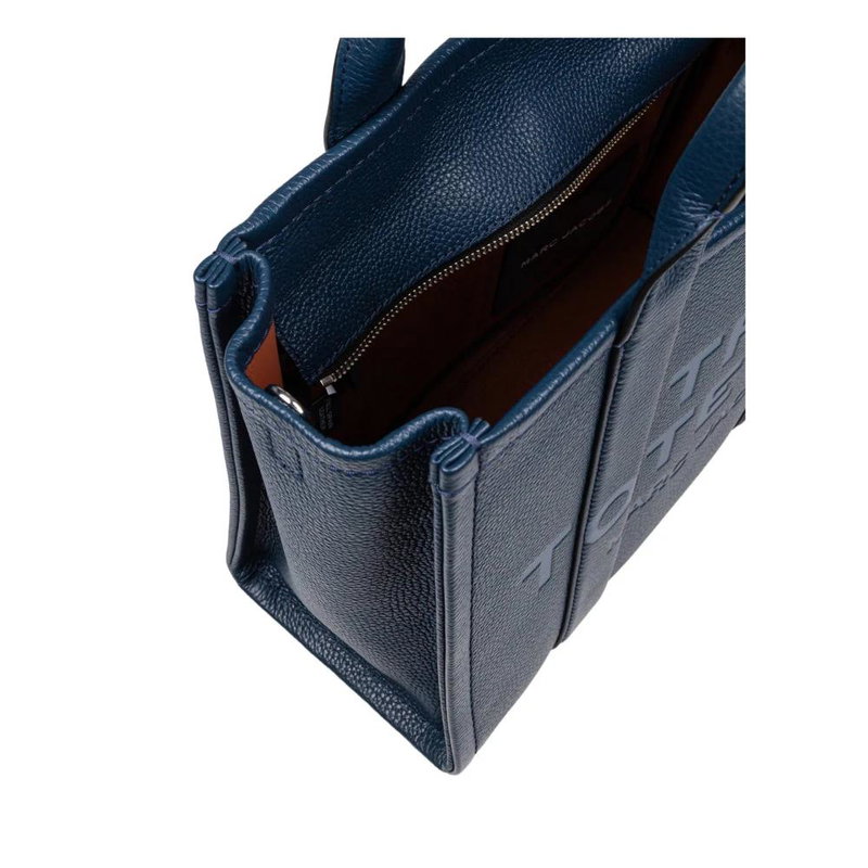 Blue Leather Tote Bag With Logos