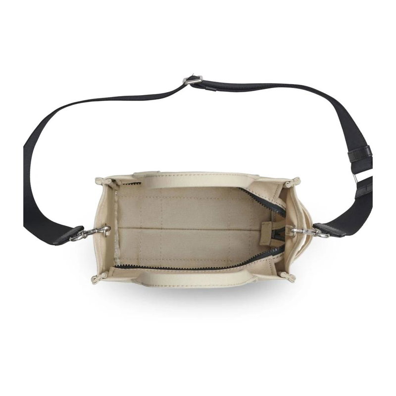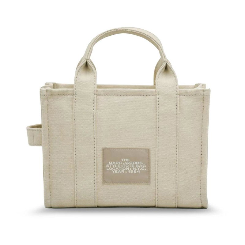 Marc Jacobs The Small Tote is a compact cotton canvas bag designed for everyday carry. It combines double top handles with a removable, adjustable shoulder strap for versatile wear.