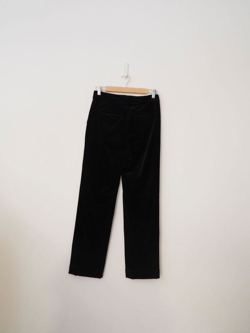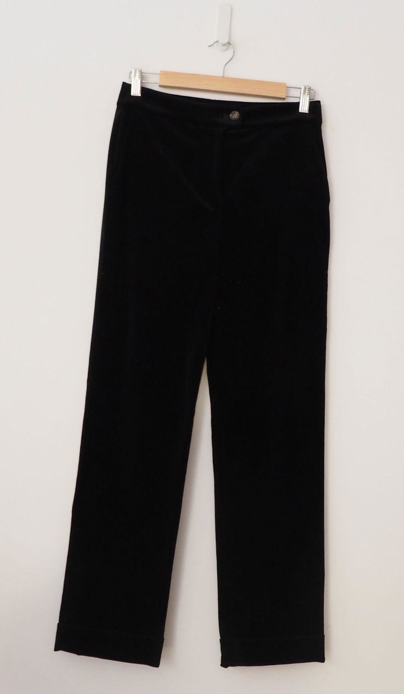 Black velvet trousers in excellent pre-worn condition with button and front zip fastening.