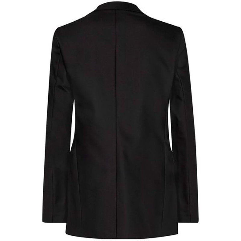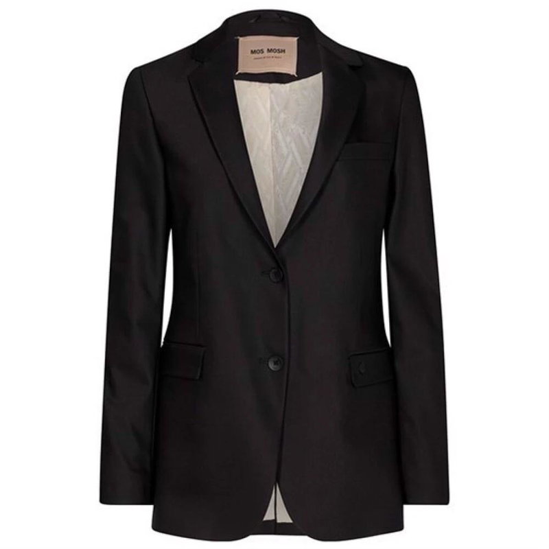 Elevate your wardrobe with the black MOS Mosh Mary Night blazer. This blazer features a double button closure, curved bottom hem, and two front flap pockets. The slightly padded shoulders and buttons on cuffs add a touch of sophistication. Made with a blend of cotton, polyamide, elastane, and polyester, this blazer is both comfortable and stylish.