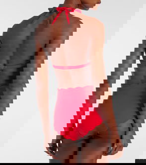 The Palm Springs bikini top by Marysia showcases signature hand-cut scalloped edges without stitching for a smooth, flattering fit. Designed for comfort, this piece features an elasticated hem and wide shoulder straps for added support.