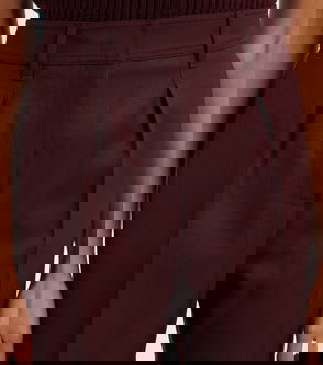 Cognac Houndstooth Wool-Blend Straight Pants.