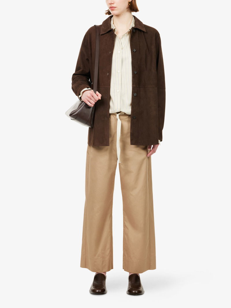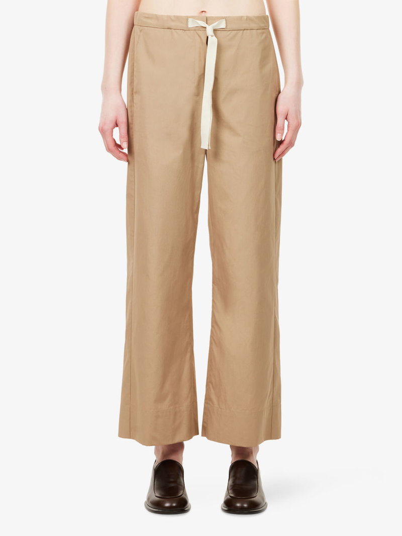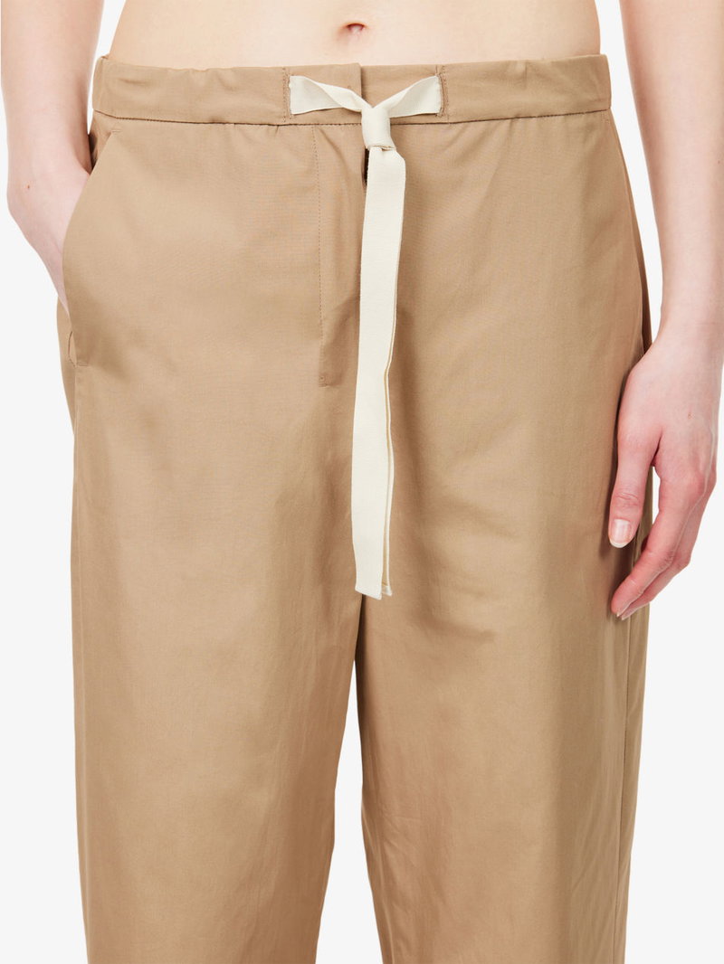 'S Max Mara cotton trousers. Button and zip-fly fastening. Regular fit, cropped wide leg, elasticated waistband, self-tie drawstring at waist, slip pockets at sides.