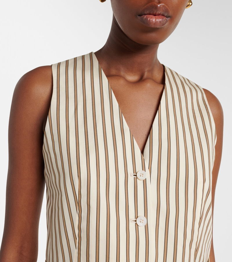 Boasting a rich manufacturing history, Max Mara represents the quintessence of Italian sophistication and expertise. Made from lightweight cotton and silk, the Fauno striped, slim-fit vest features a V-neck silhouette with a mother-of-pearl button front and subtle welt pockets at the waist.