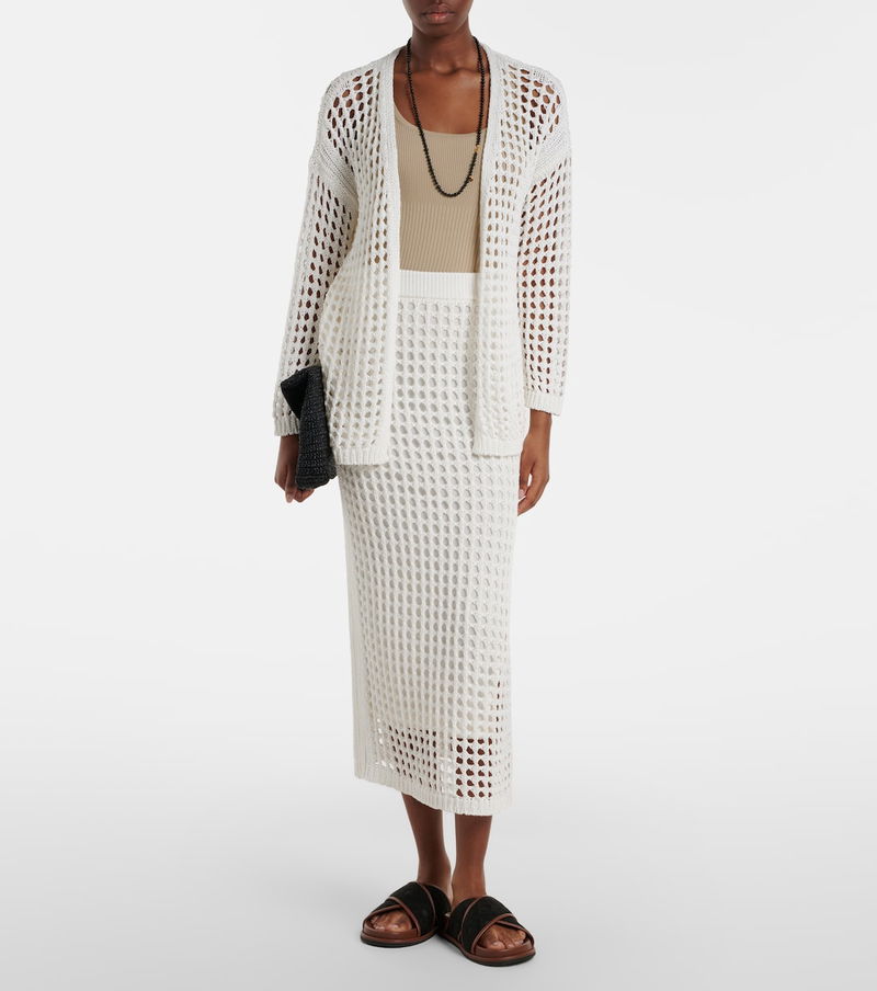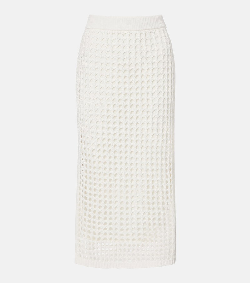 Boasting a rich manufacturing history, Max Mara represents the quintessence of Italian sophistication and expertise. Knitted from soft cotton in an open construction, the Geode midi skirt features a straight silhouette with tonal cotton lining and ribbed details at the waistband and sides.