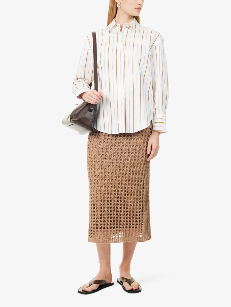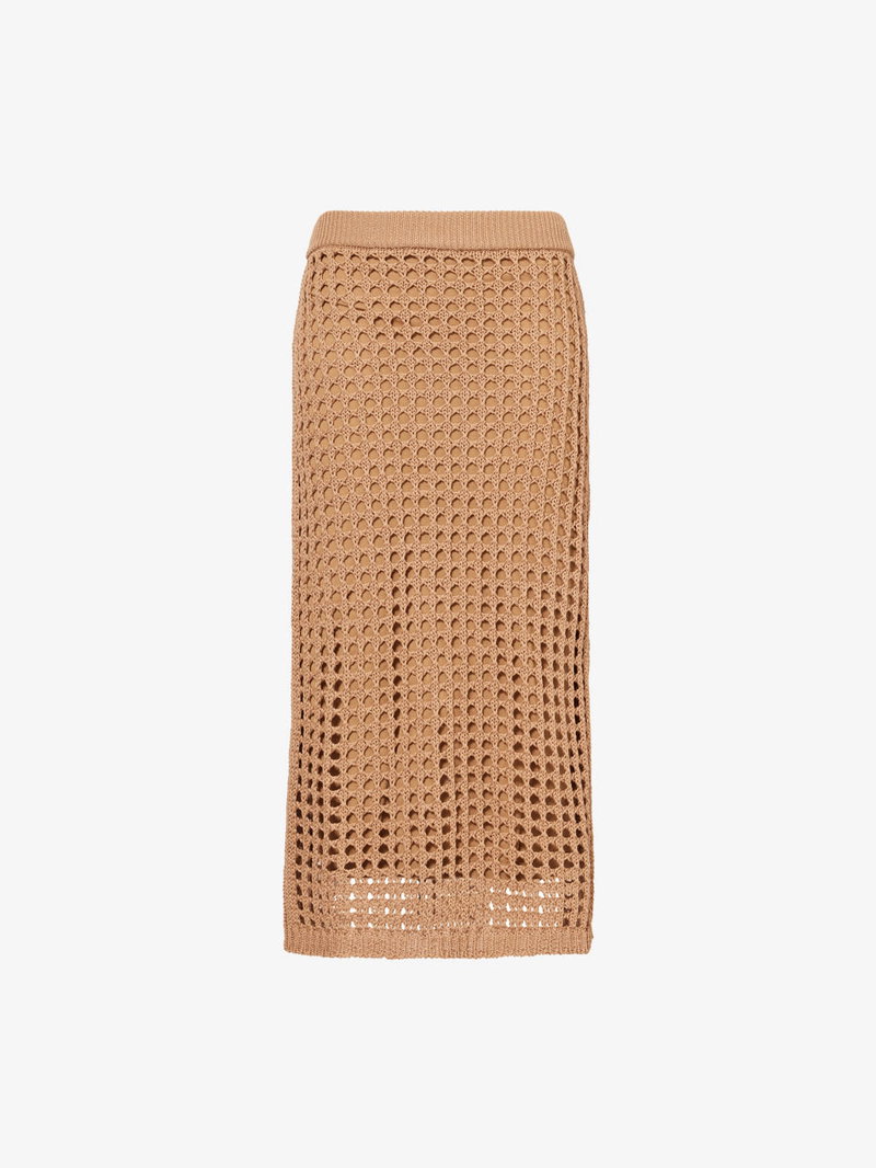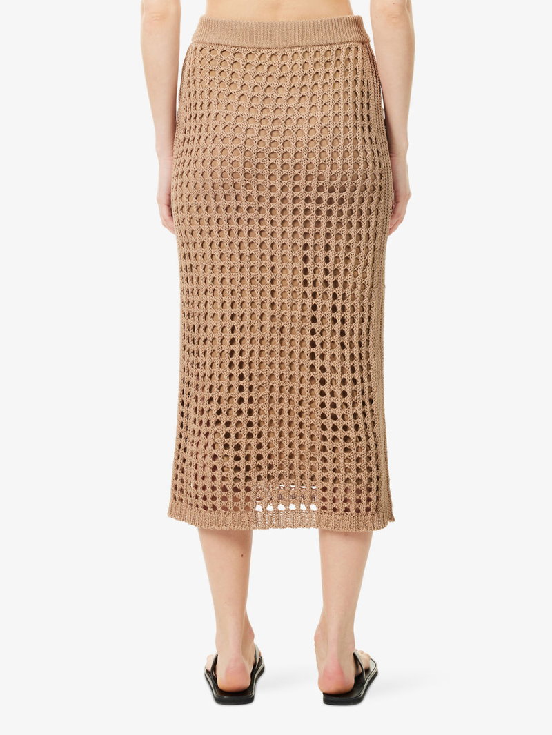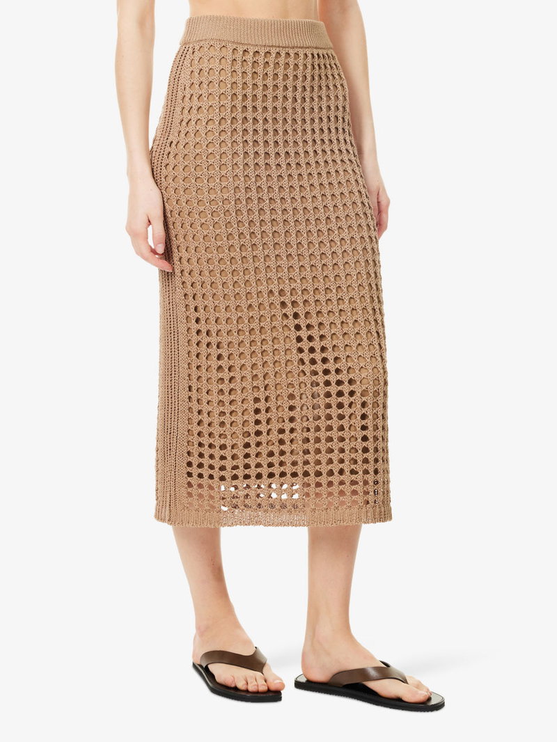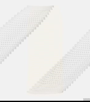 Max Mara cotton midi skirt. Pulls on. Fitted, ribbed waistband, open knit design, lined.
