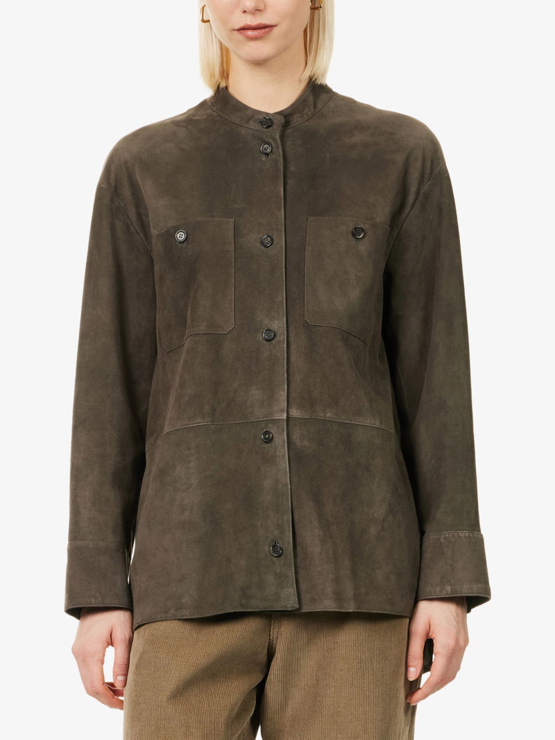 Top-Stitched Suede Jacket