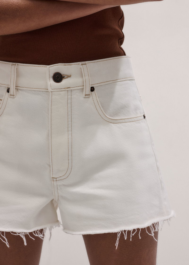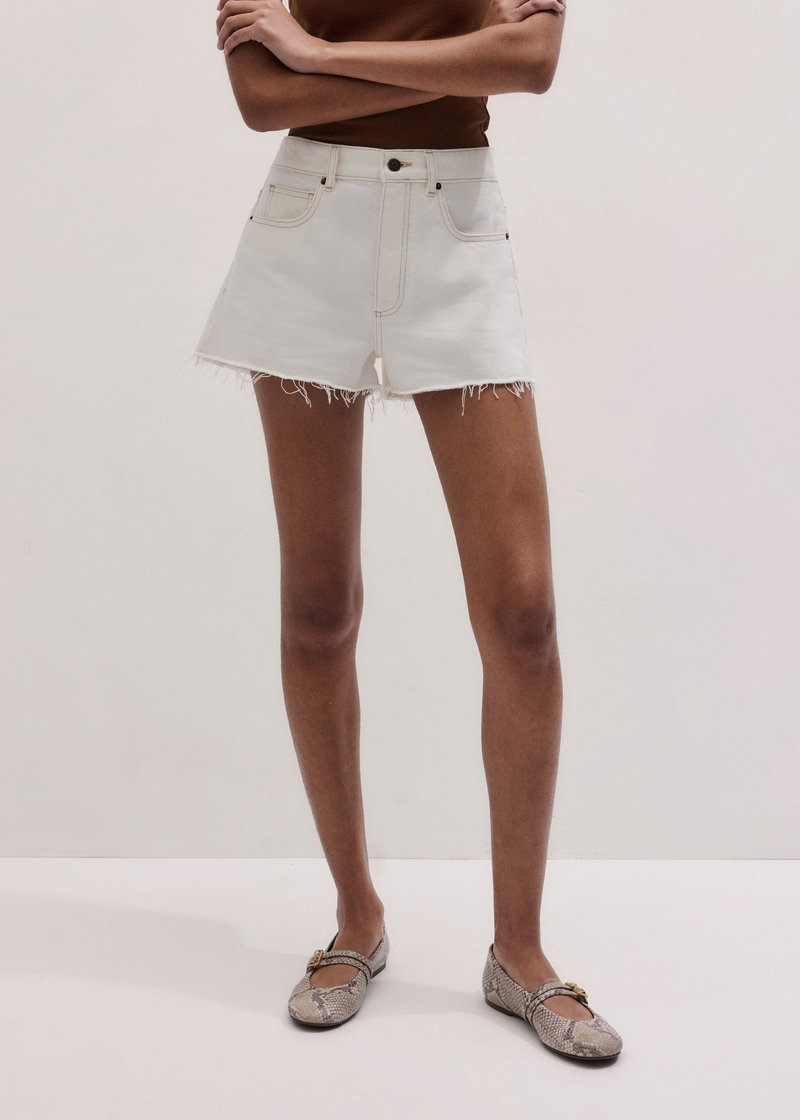 ME+EM's Ecru Classic Cut Off Short has a slightly flared cut-off edge which delivers a flattering waist-to-hem ratio.