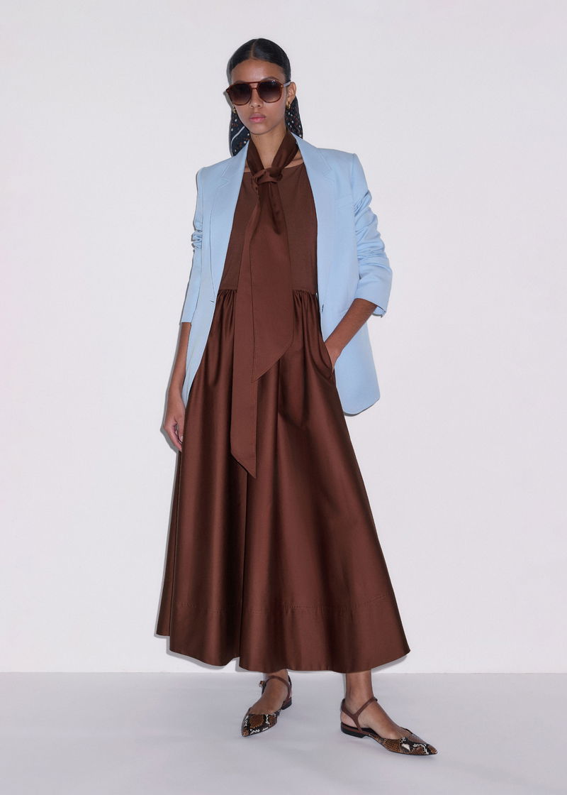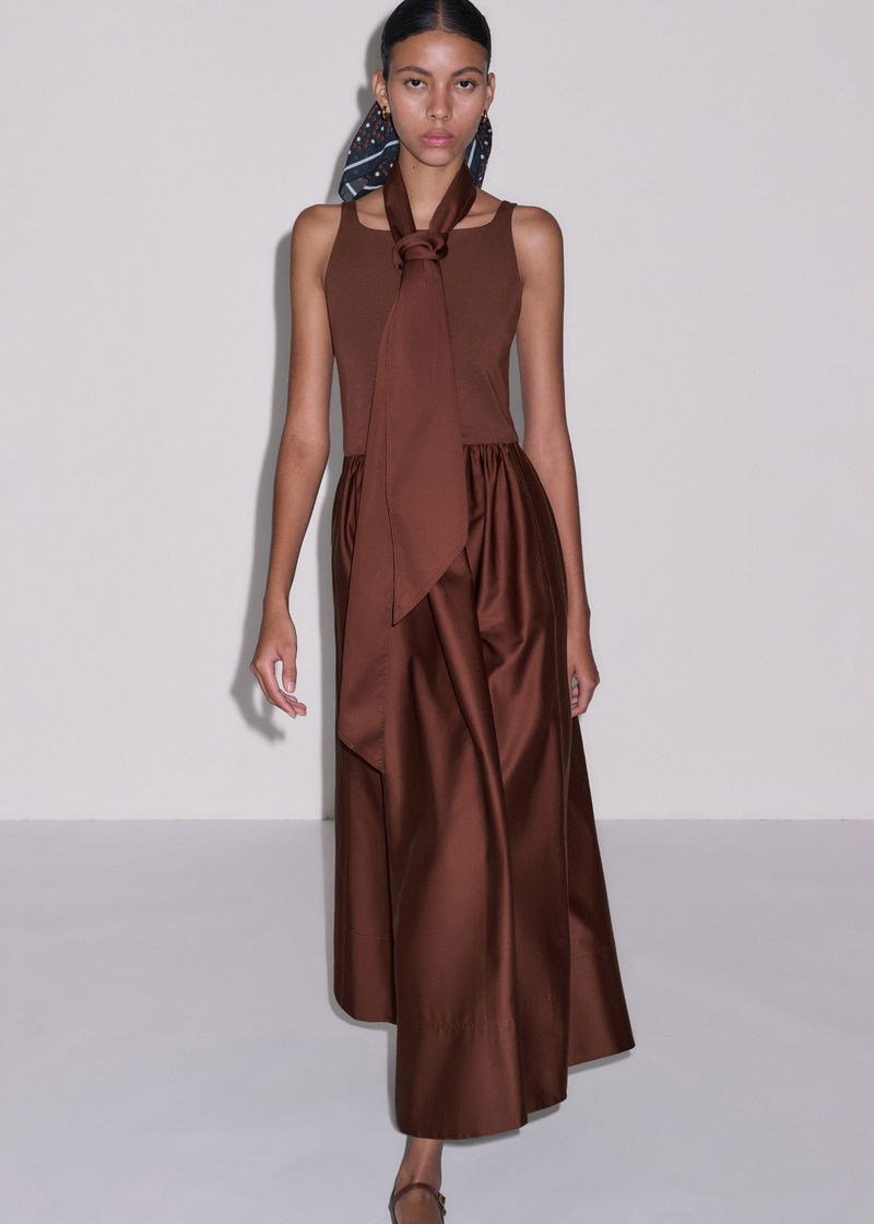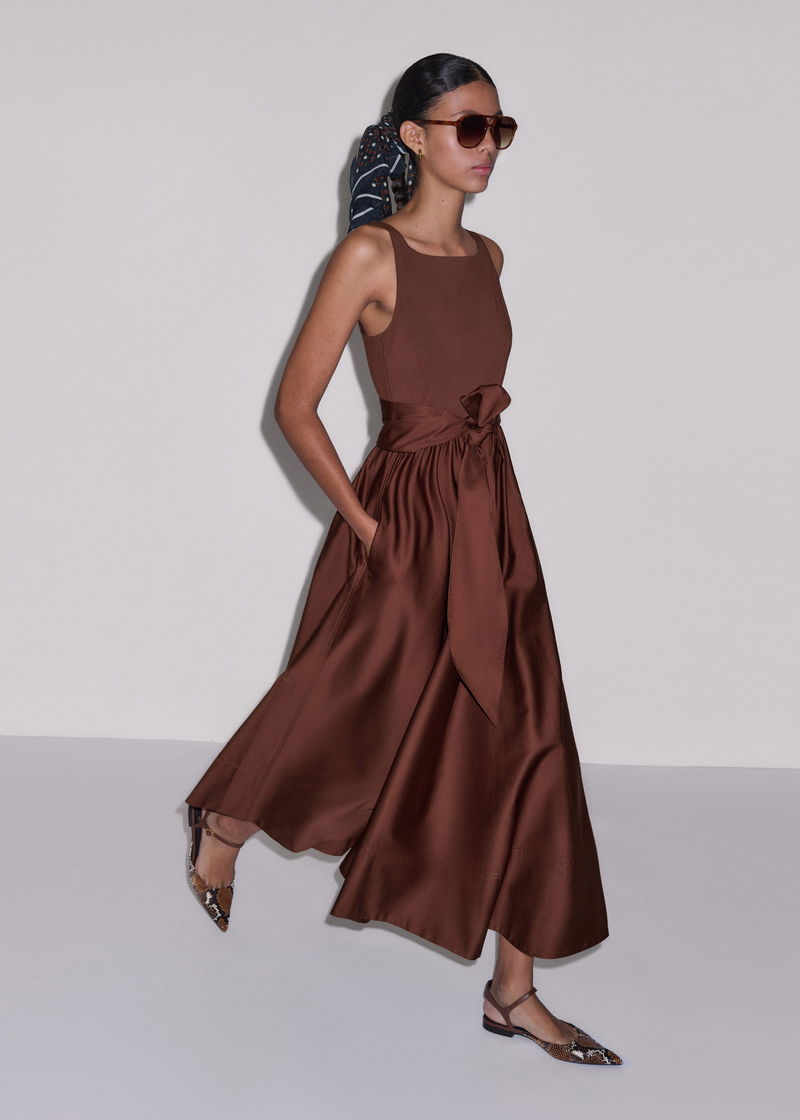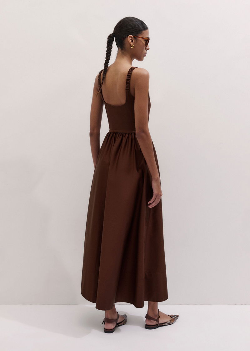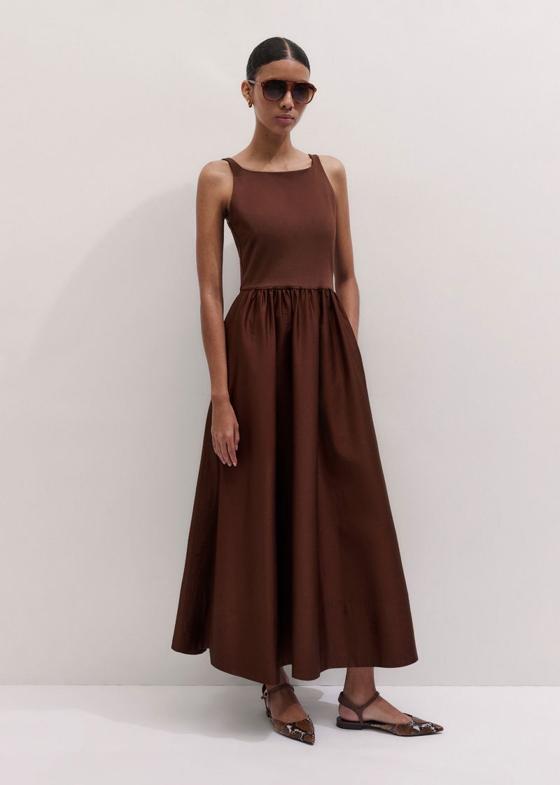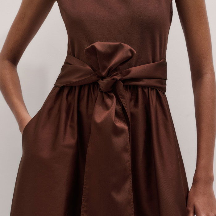 ME+EM's Cinnamon Brown Fit + Flare Maxi Dress comes with a matching poplin tie belt to define your waist.